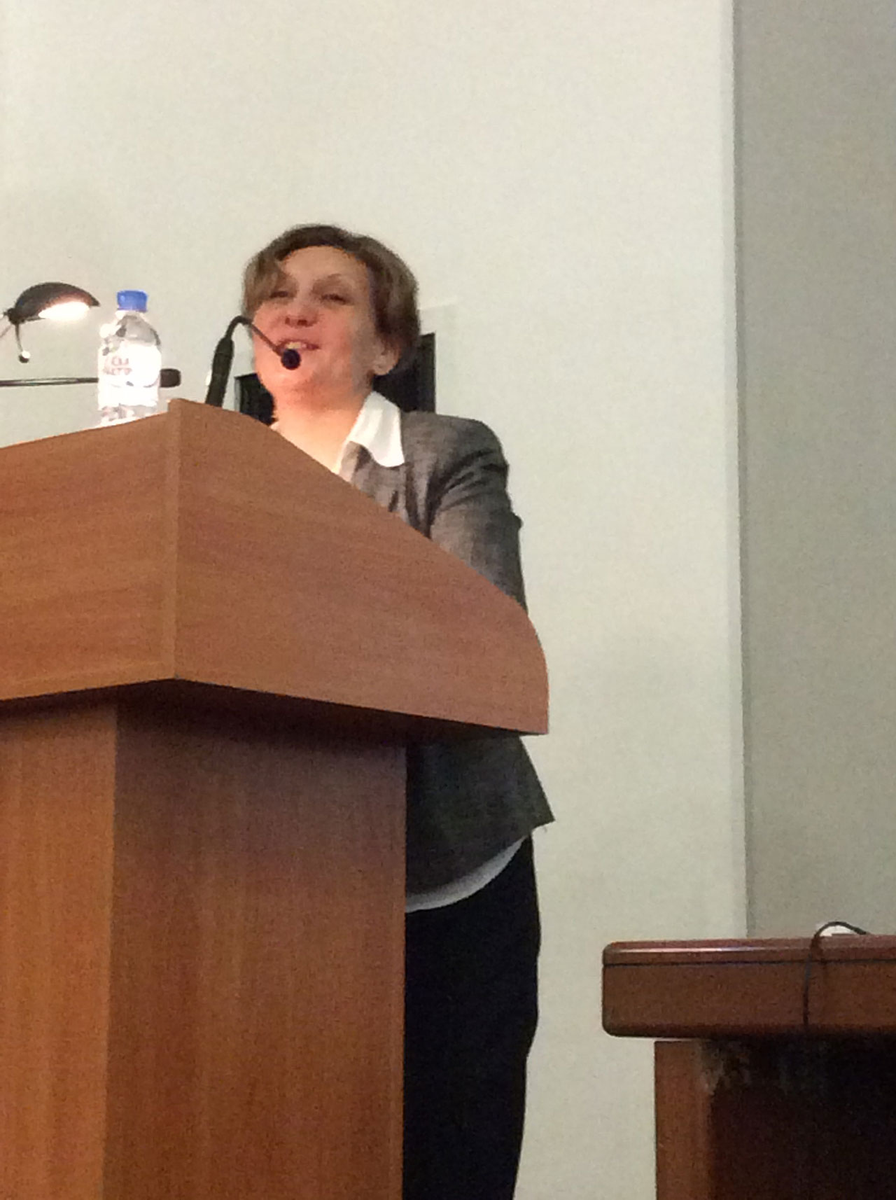 С интересным докладом выступила Е. Г. Карапетова - зав. кафедрой теории и практики перевода №1 Минского государственного лингвистического университета, которая рассказала подробно об образовательной структуре обучения переводу в Белоруссии. Университет подписал меморандум с ООН и начал готовить письменных и устных переводчиков в рамках магистратуры, поведала о трудностях перехода на обучение 4+2.