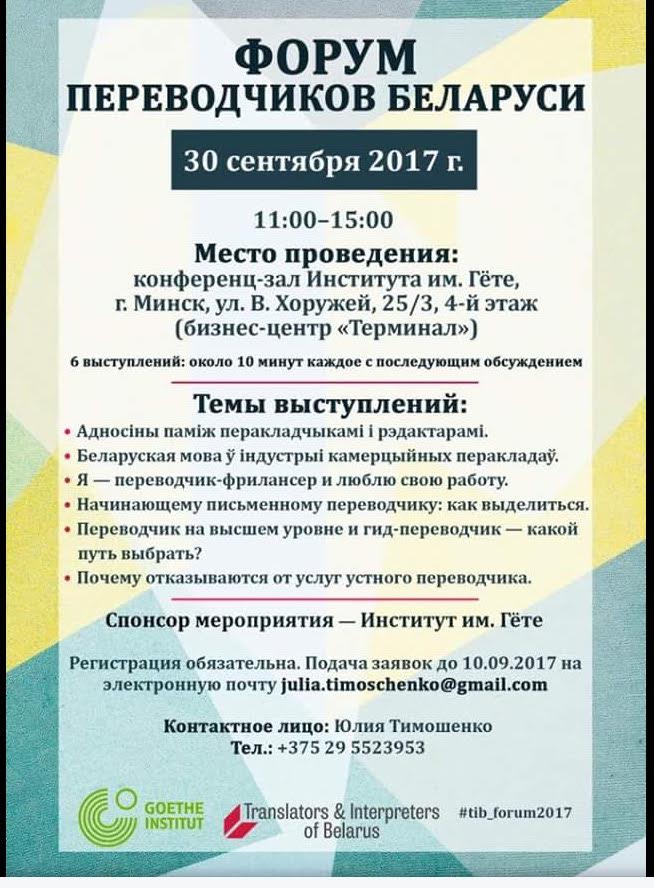 Форум переводчиков Беларуси. 30 сентября 2017 года, Минск